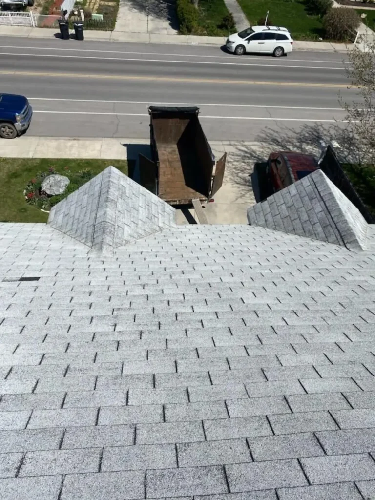 At EagleRidge Roofing and Construction, we recently completed a beautiful new roof installation for the Rodrigues family in Lehi, Utah. Their home received a dramatic upgrade with Landmark Georgetown Gray shingles by CertainTeed — a sophisticated color that complements the Utah landscape while delivering proven weather protection.