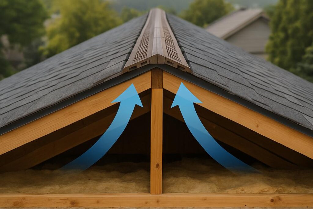 One of the most effective ventilation upgrades is installing a ridge vent — a low-profile vent that runs along the peak of your roof.