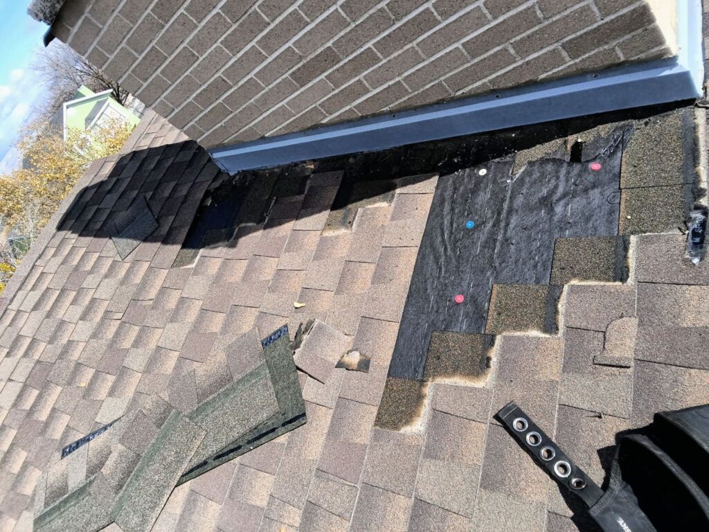 ✔️ Reinstalled shingles around the chimney with correct layering and sealing techniques