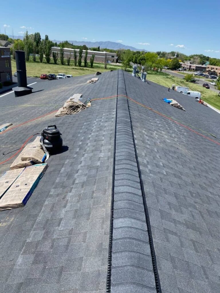 A full roof replacement was completed for a commercial building in Kaysville, Utah, featuring CertainTeed Landmark shingles in the Moire Black finish. The result is a durable and professional-grade roof that enhances both function and curb appeal.