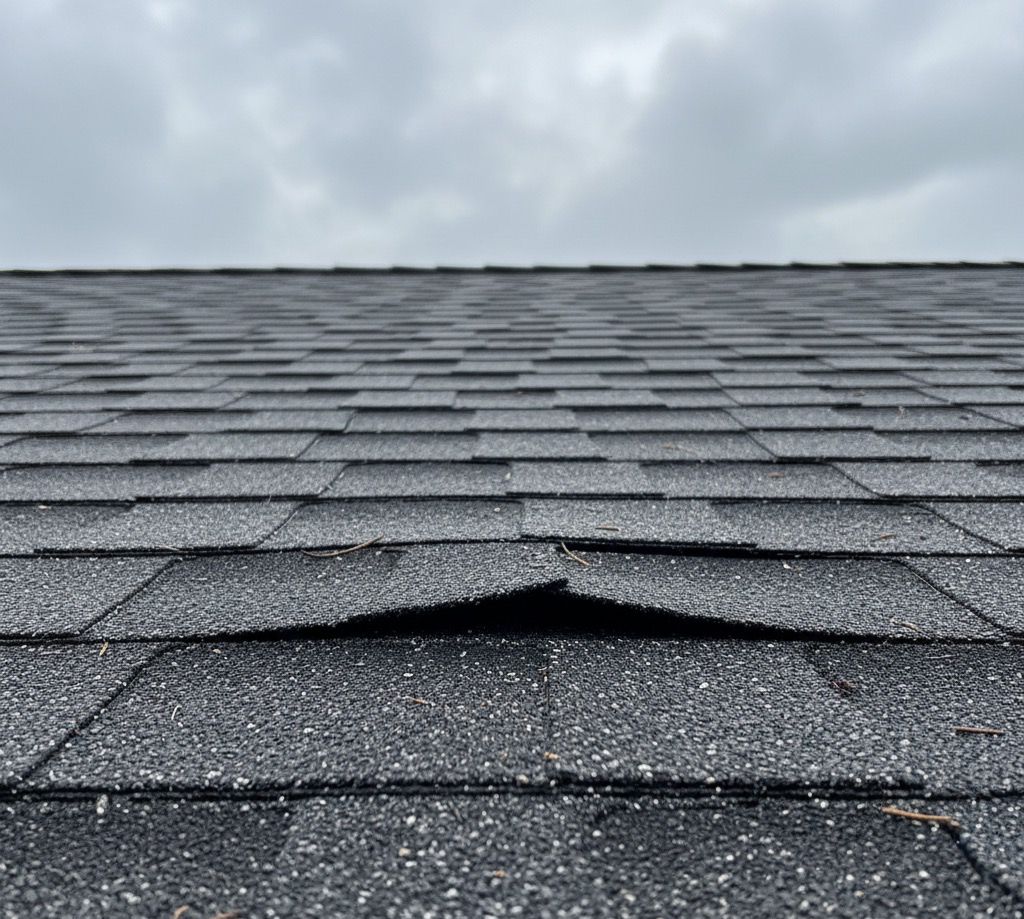 If you see: edges lifted, corners bent, shingles that look “out of place”, lines that used to be straight now look uneven