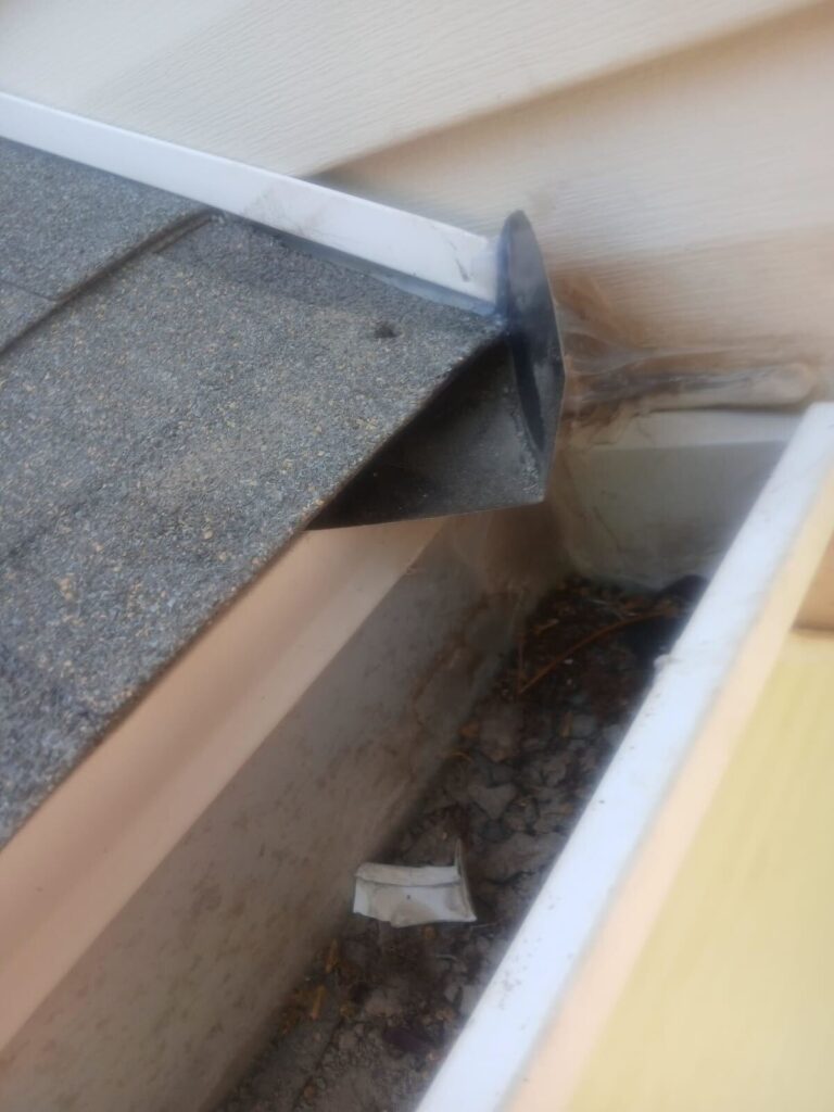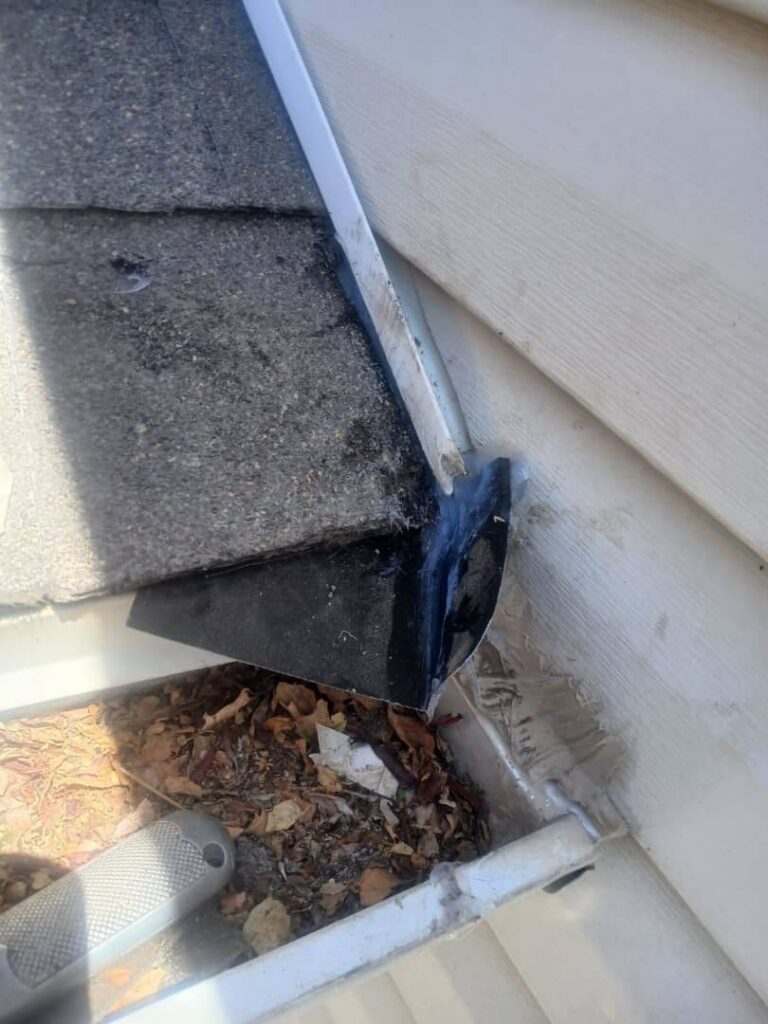 Our crew installed new kick-out flashing at the critical transition between the roof and sidewall. This small but powerful piece of metal redirects rainwater away from the siding and into the gutter system — preventing long-term moisture damage to the structure.