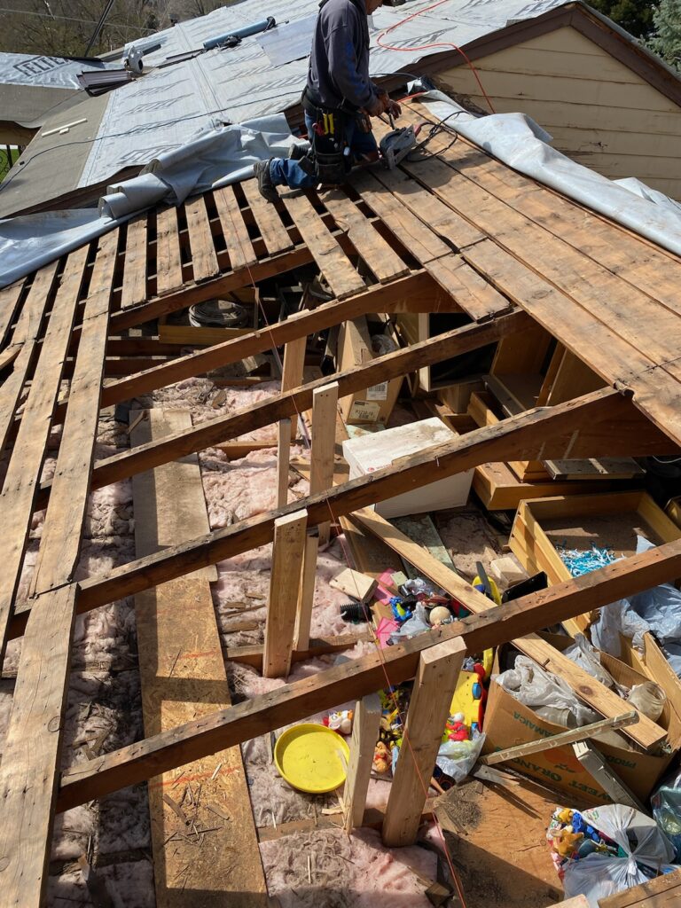 The Jones family in Ogden had significant issues with their roofing, requiring the removal of three layers of shingles. We promptly addressed this by installing a durable standing seam metal roof and repaired damaged trusses in the attic to ensure structural integrity. The result was a robust and reliable roofing solution tailored to their home.