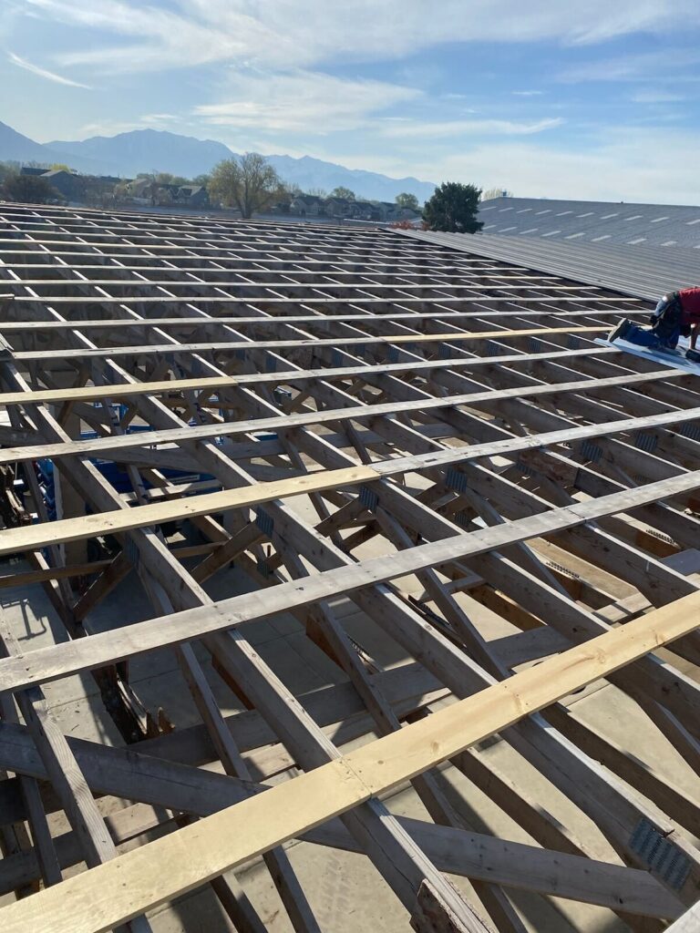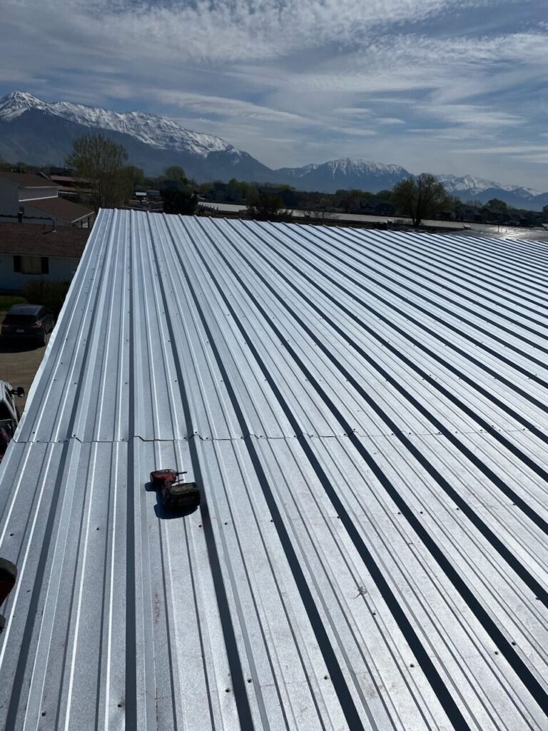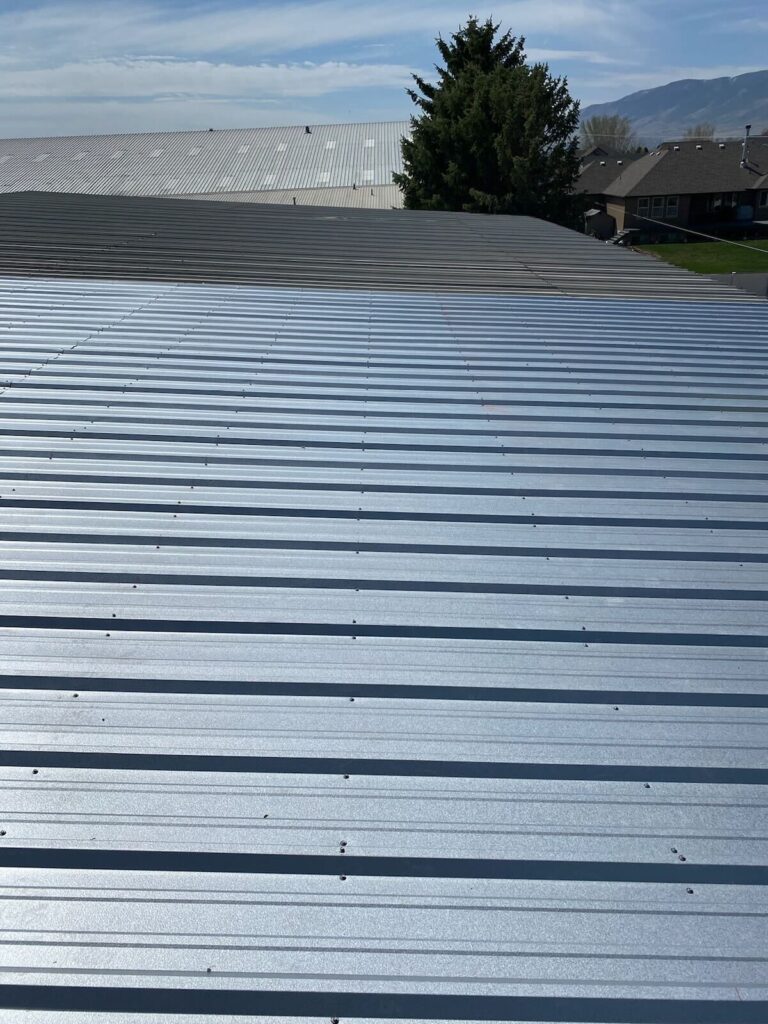 Wind damage had caused the roofing panel to blow off the shop in Lehi, Utah. We installed a 3-foot structural steel roofing panel, ensuring durability and protection against future weather events for Kirk. This restoration enhances the structural integrity of the shop, providing peace of mind.