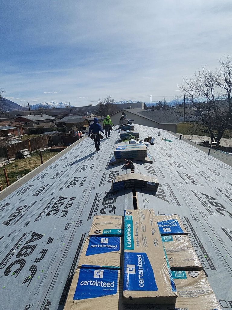 For this Orem home, CertainTeed Landmark Driftwood shingles were selected as the new roofing material, providing a widely used residential roofing solution.