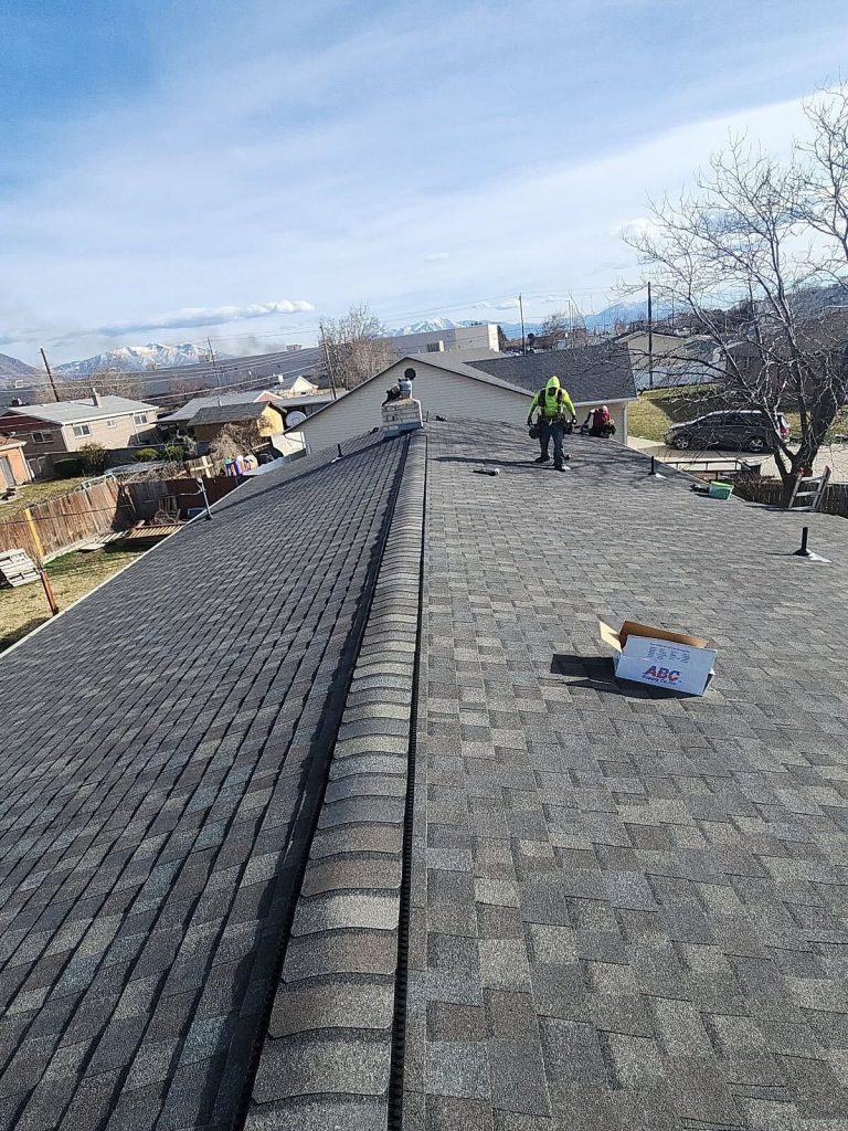 For this project, the Eagle Ridge Roofing & Construction team completed a full roof replacement in Orem, Utah, which included removing two layers of existing shingles before installing new CertainTeed Landmark shingles in Driftwood.