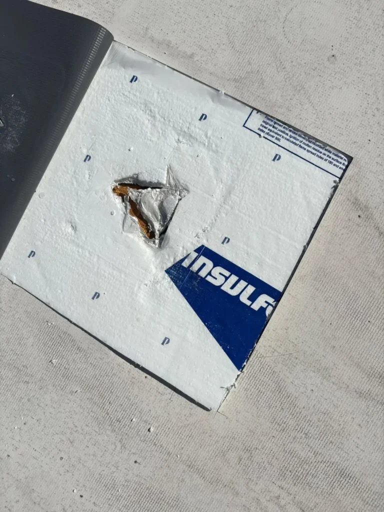✔️ Hail can create hidden punctures and cracks in TPO membranes, leading to leaks and insulation damage.