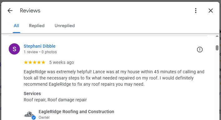 🗣️ “EagleRidge was extremely helpful! Lance was at my house within 45 minutes of calling and took all the necessary steps to fix what needed to be repaired. I would definitely recommend them!”