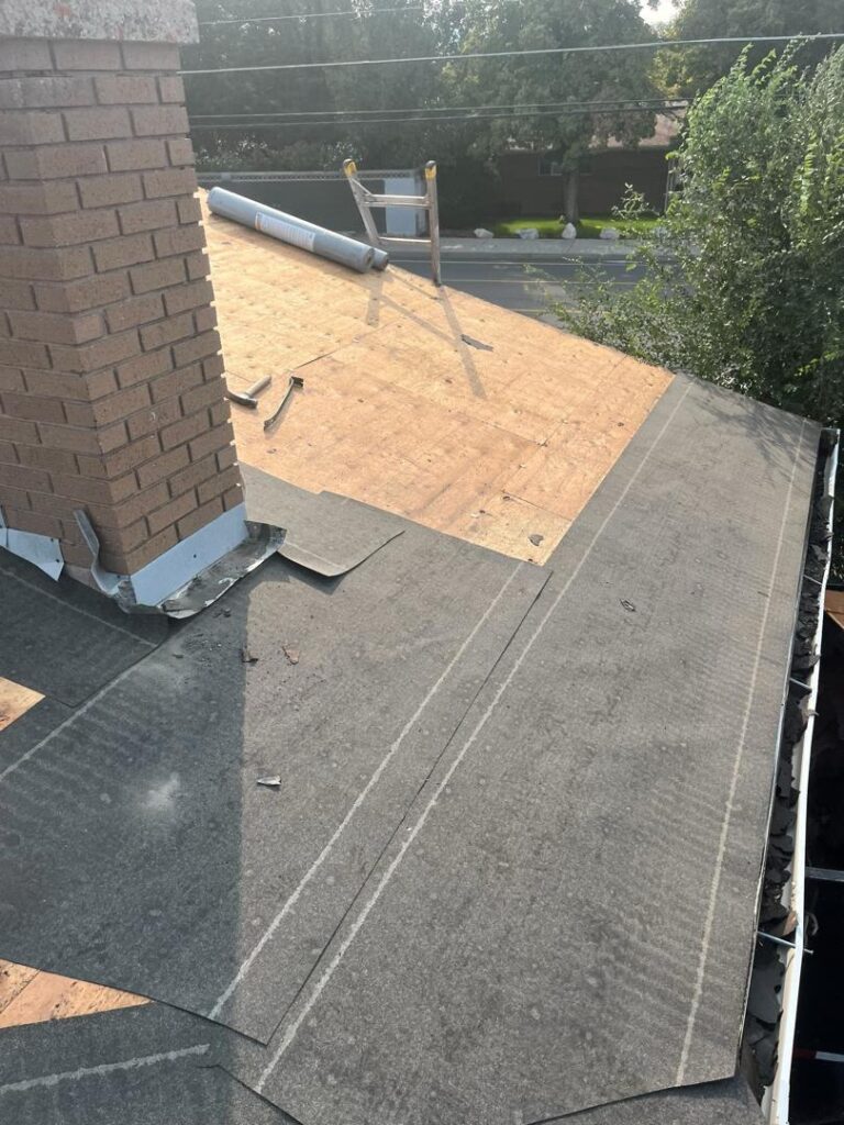 This wasn’t just a standard shingle replacement. Before installing the new roofing system, our crew discovered areas of rotted fascia and damaged plywood decking that had to be addressed first. Structural integrity is non-negotiable for us, so we carefully removed and replaced every compromised section before laying down the new materials.
