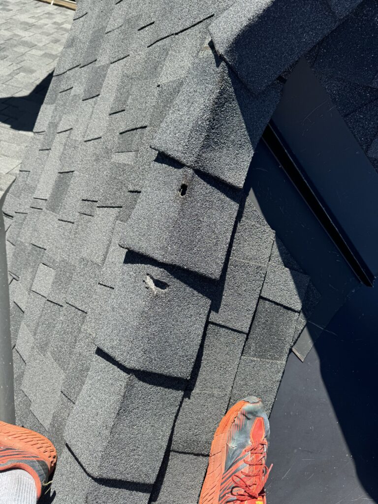 During the winter maintenance inspection, we identified damaged shingles on the ridge vent along with some missing and loose shingles beneath one of the windows. We promptly repaired the damaged shingles and sealed around the plumbing pipes and vents to safeguard against leaks.