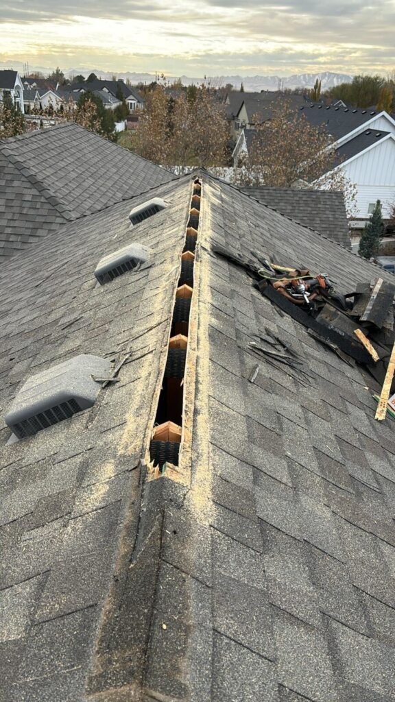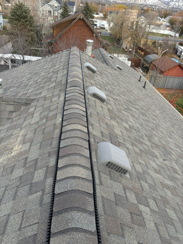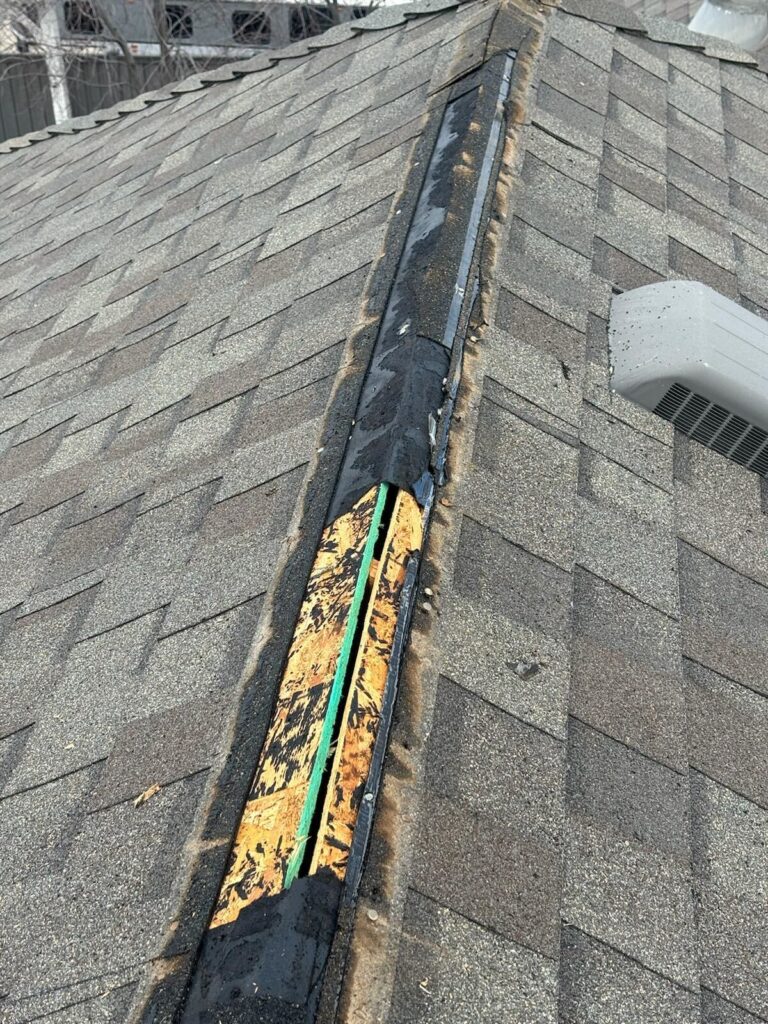During a winter maintenance roof inspection, we identified insufficient attic ventilation, which could lead to overheating and cracking of the shingles. To address this issue, we installed a ridge vent and sealed the flashing and plumbing pipes to ensure everything was watertight for the winter season. This helps prevent premature wear on the shingles and reduces cooling costs for the homeowner.