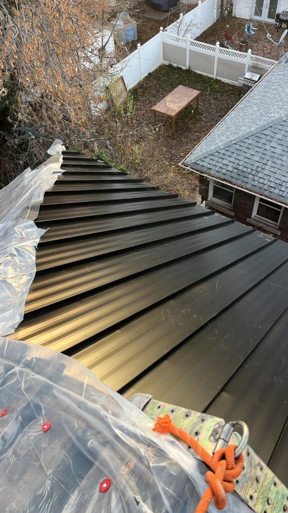 Standing Seam Metal Roof Installation in Salt Lake City, Utah, 1½” Snap Lock Panels in Dark Bronze