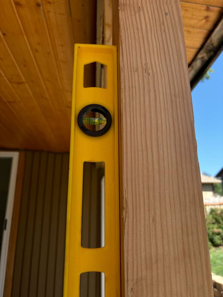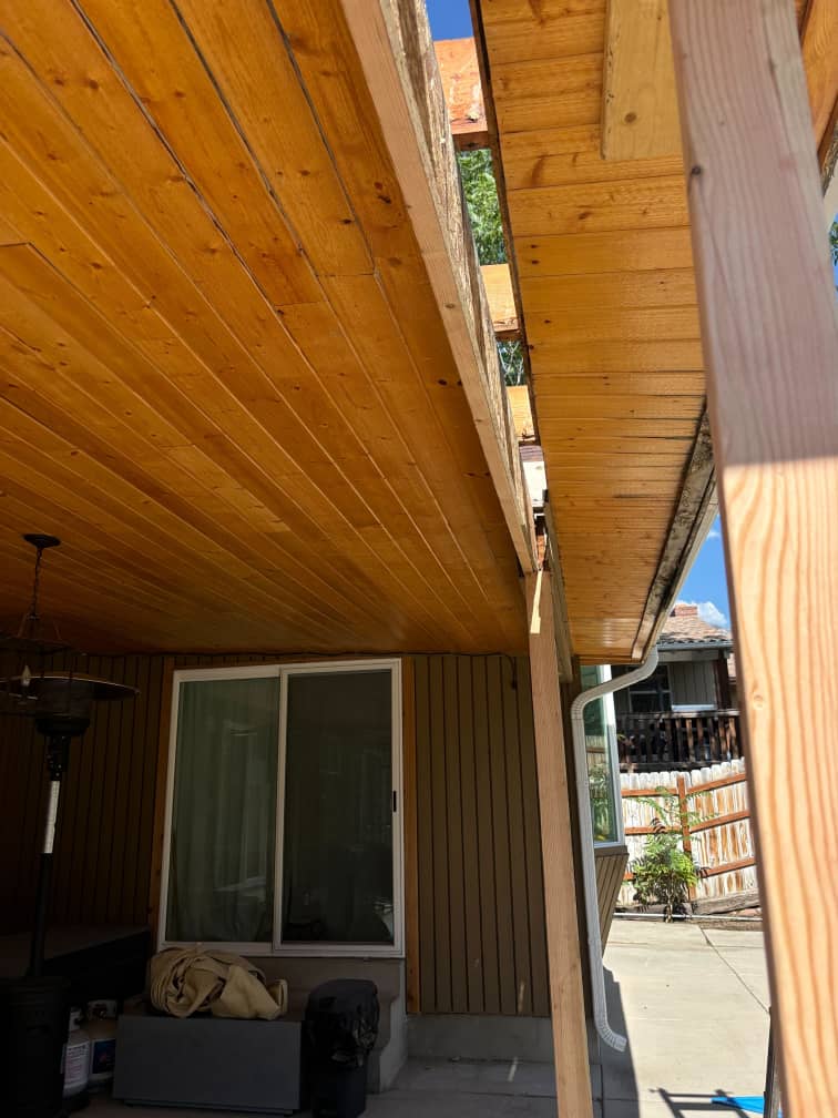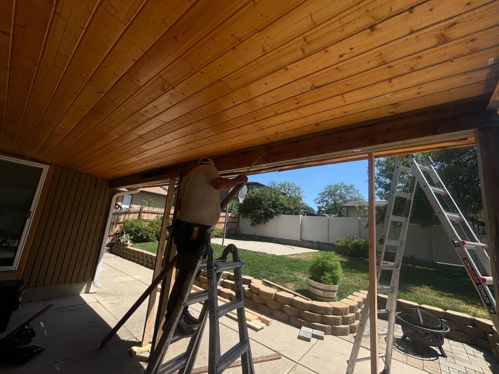 We began by replacing damaged 4×4 support posts and a compromised 2×10 header that were no longer structurally sound. These elements are key to maintaining roof load and framing alignment, and their failure can lead to costly collapse or sagging if not corrected quickly.
