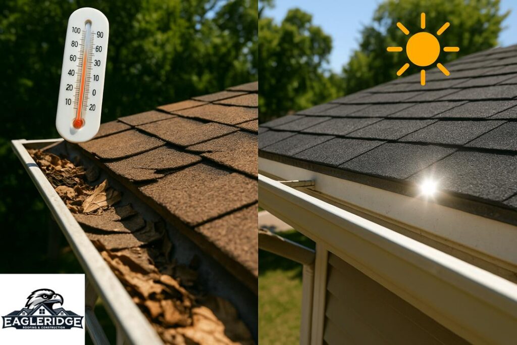 • Preventative Maintenance – Replacing damaged shingles and keeping gutters clear ensures your roof performs better in summer heat.
