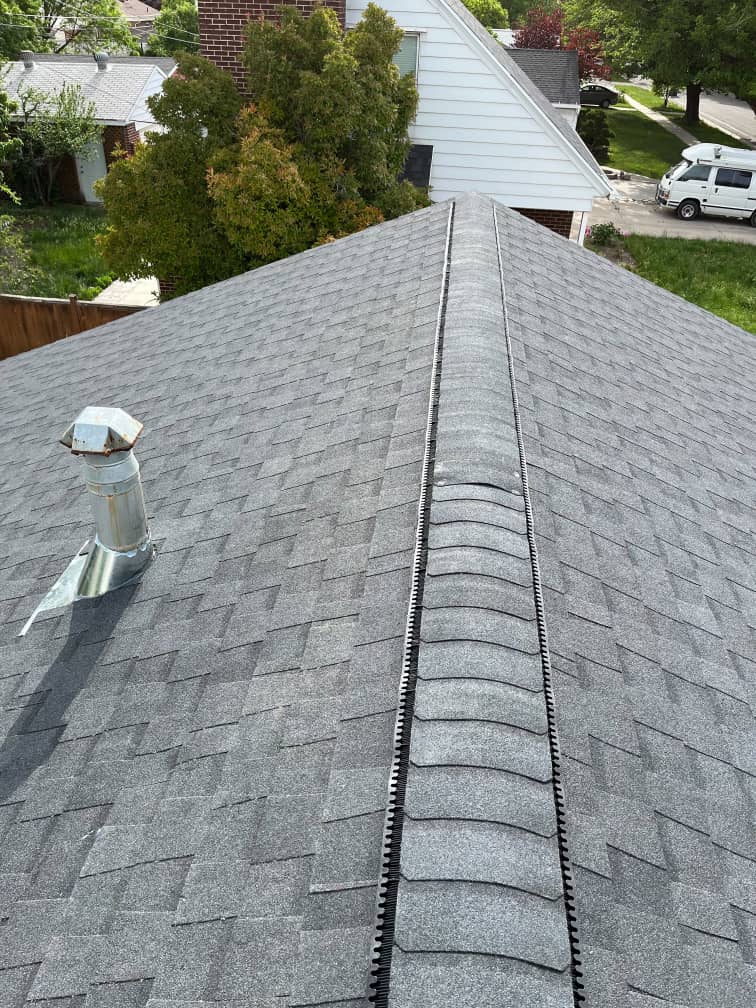 We completed a full roof replacement using CertainTeed Landmark shingles in Moire Black, a sleek and sophisticated color choice that enhances the home’s curb appeal while offering top-tier protection against the elements.